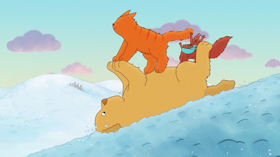 Op een winterse dag ontdekken Dikkie Dik en Poes Muis iets nieuws: sneeuw! Maar er is ook…