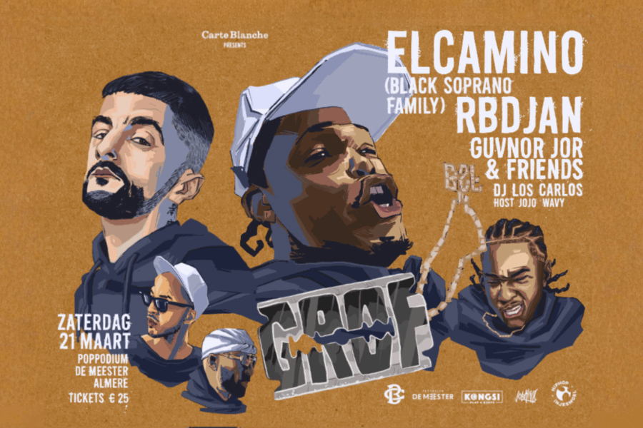 Zijn solodebuut De Onderbaas bevestigde zijn iconische status en er zijn weinig rappers die kunnen tippen aan de kwaliteit én impact van zijn legendarische 101Barz-sessies. RBDJAN is al meer dan twintig jaar in de game en nog altijd springlevend: de afgelopen jaren maakte hij stuk met zijn projecten ‘King’, ‘The Hustle Continues’ en ‘Kleine Jongens Worden Groot’ en hoorde je hem effortless beats killen op releases van o.a. Winne, Hef, Adje en Rotjoch.