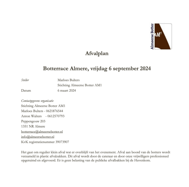 Op vrijdag 4 september 2026 start de botterrace in Almere Haven. Zo'n 20 botters doen mee met de race. Deze race is bedoeld voor bedrijven. Zo kun je als bedrijf (of met meerdere bedrijven samen) een boot nemen, zodat je met zakelijke relaties een leuke middag hebt.