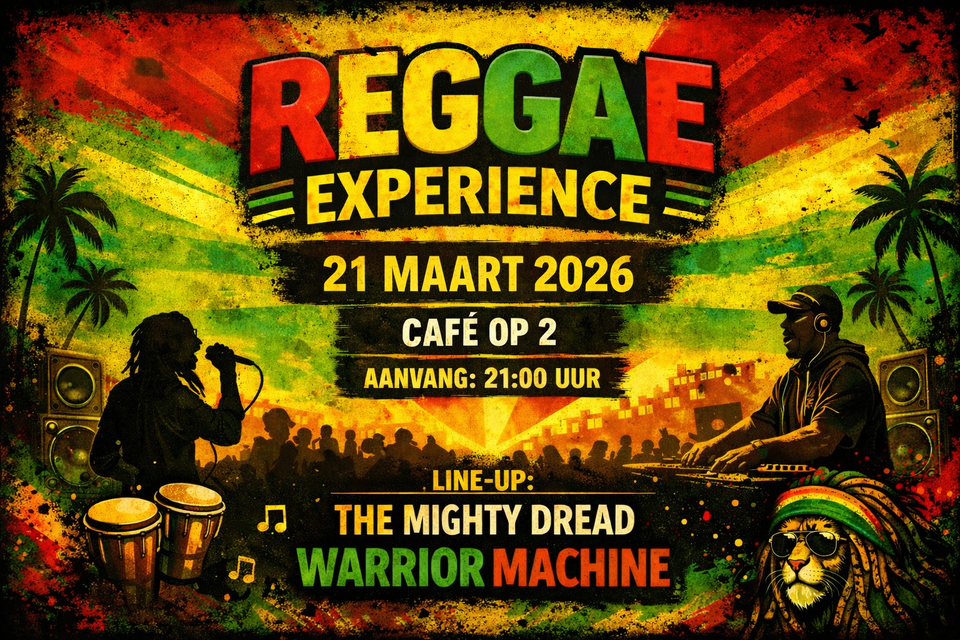 Hou je van reggae? Kom dan naar de Reggae Experience bij Cafe op 2 met The Mighty Dread Warrior Machine.