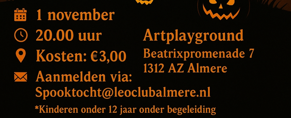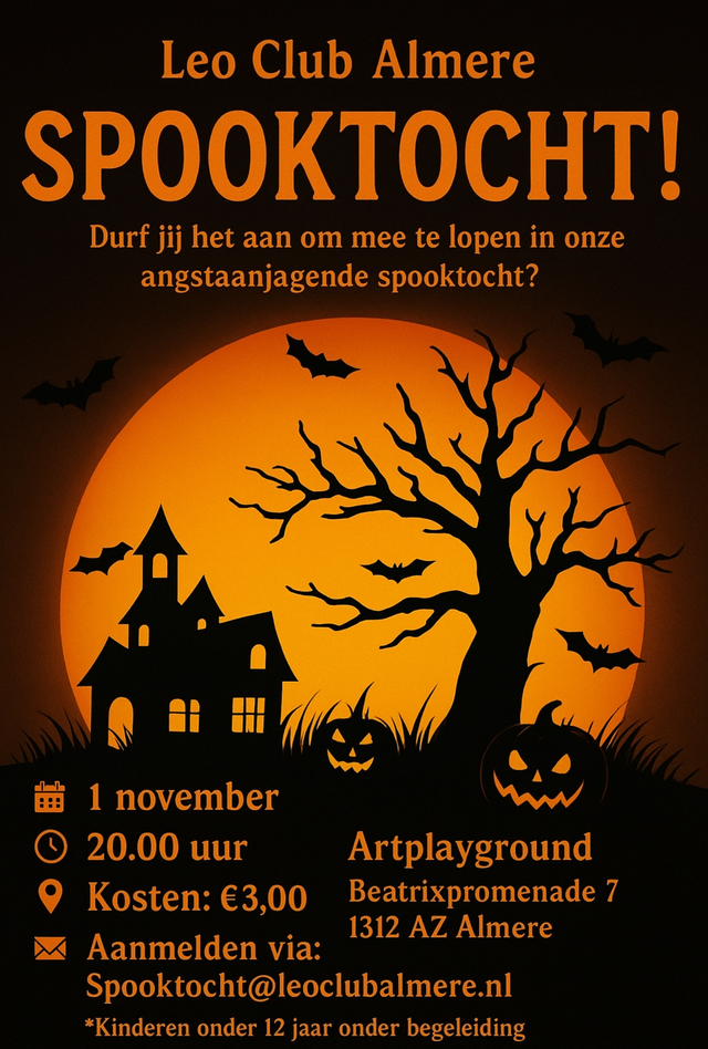 Aanmelden kan via: Spooktocht@Leoclubalmere.nl