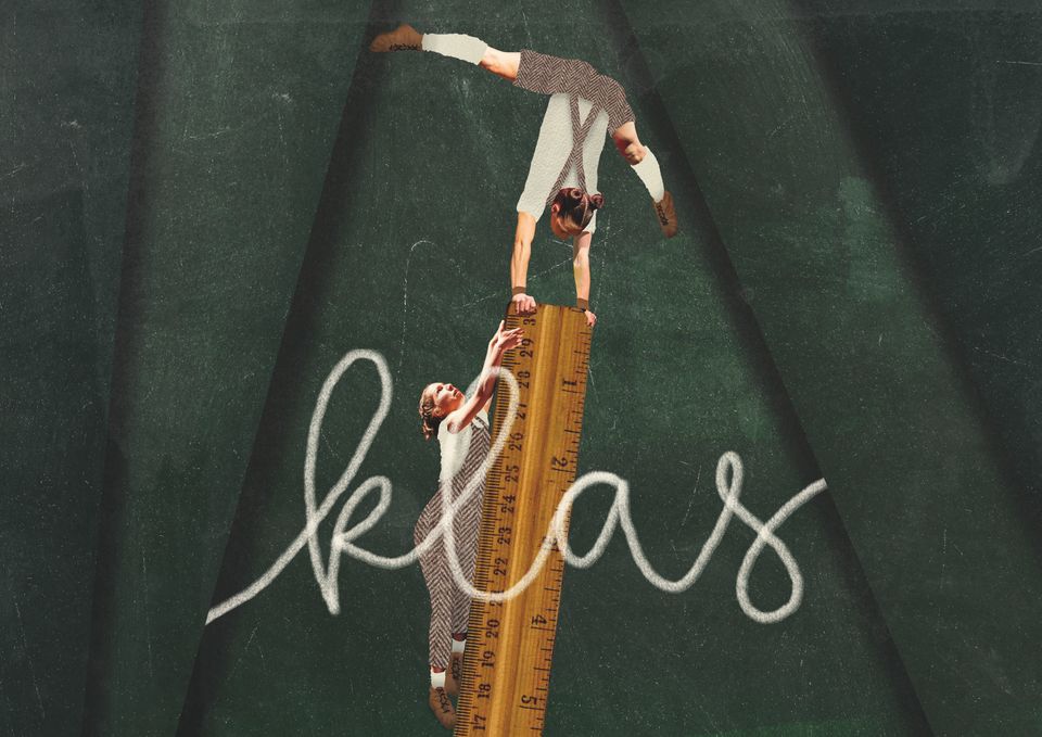 ‘KLAS’ is een woordeloze circustheatervoorstelling vol spectaculaire acrobatiek. Vier acrobaten moeten zich zien los te worstelen uit een te streng, knellend schoolsysteem. Want wie weet schuilt er in één van hen wel de nieuwe Van Gogh, Taylor Swift of Einstein!