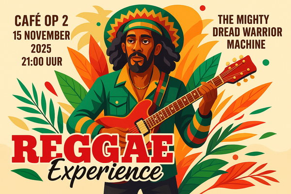 Kom naar de Reggae Experience bij Cafe op 2 met de Mighty Dread Warrior Machine.